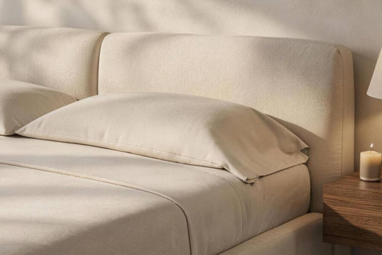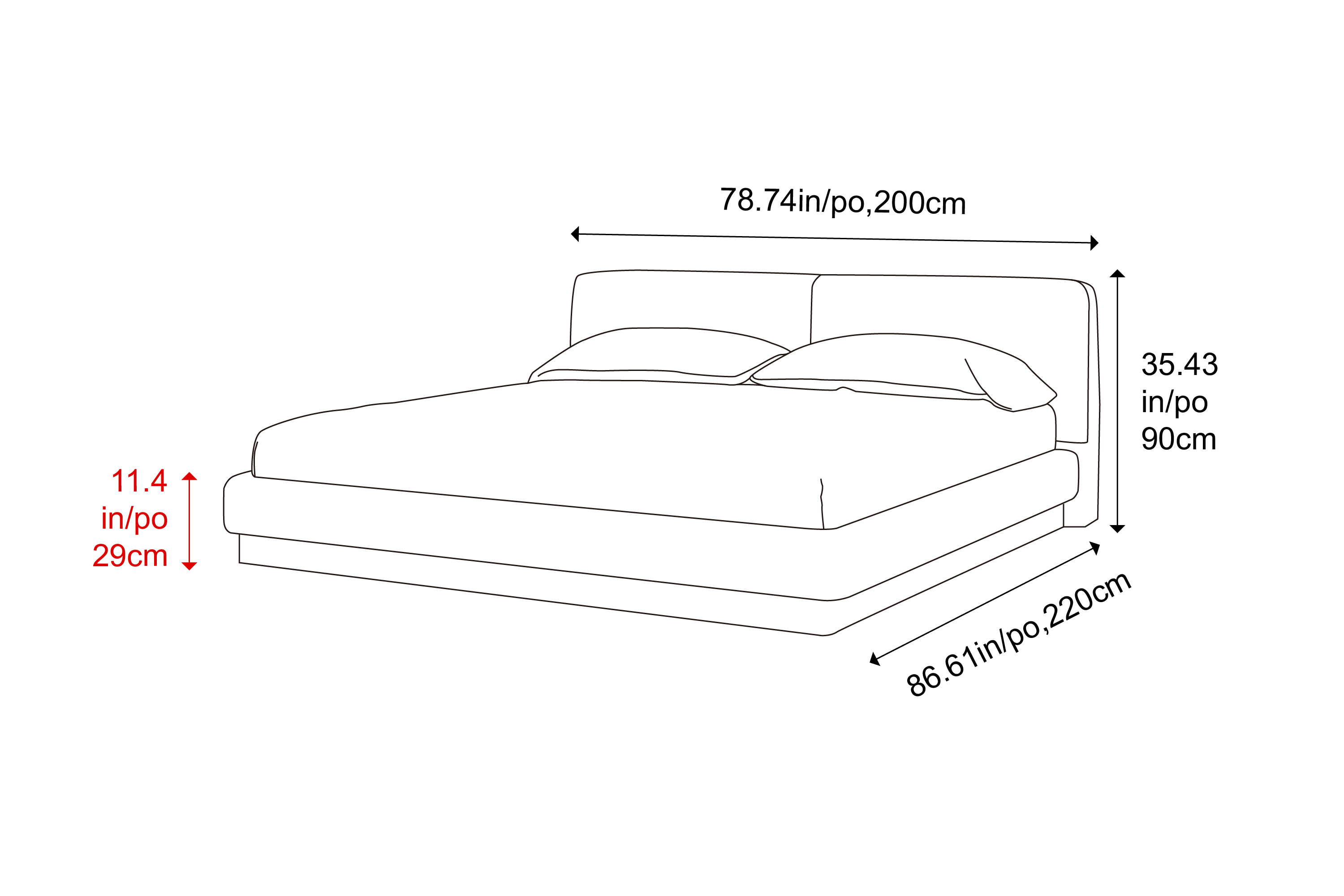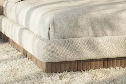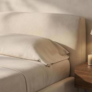 - Soft, curved upholstered headboard adds comfort with a sculptural, modern touch.