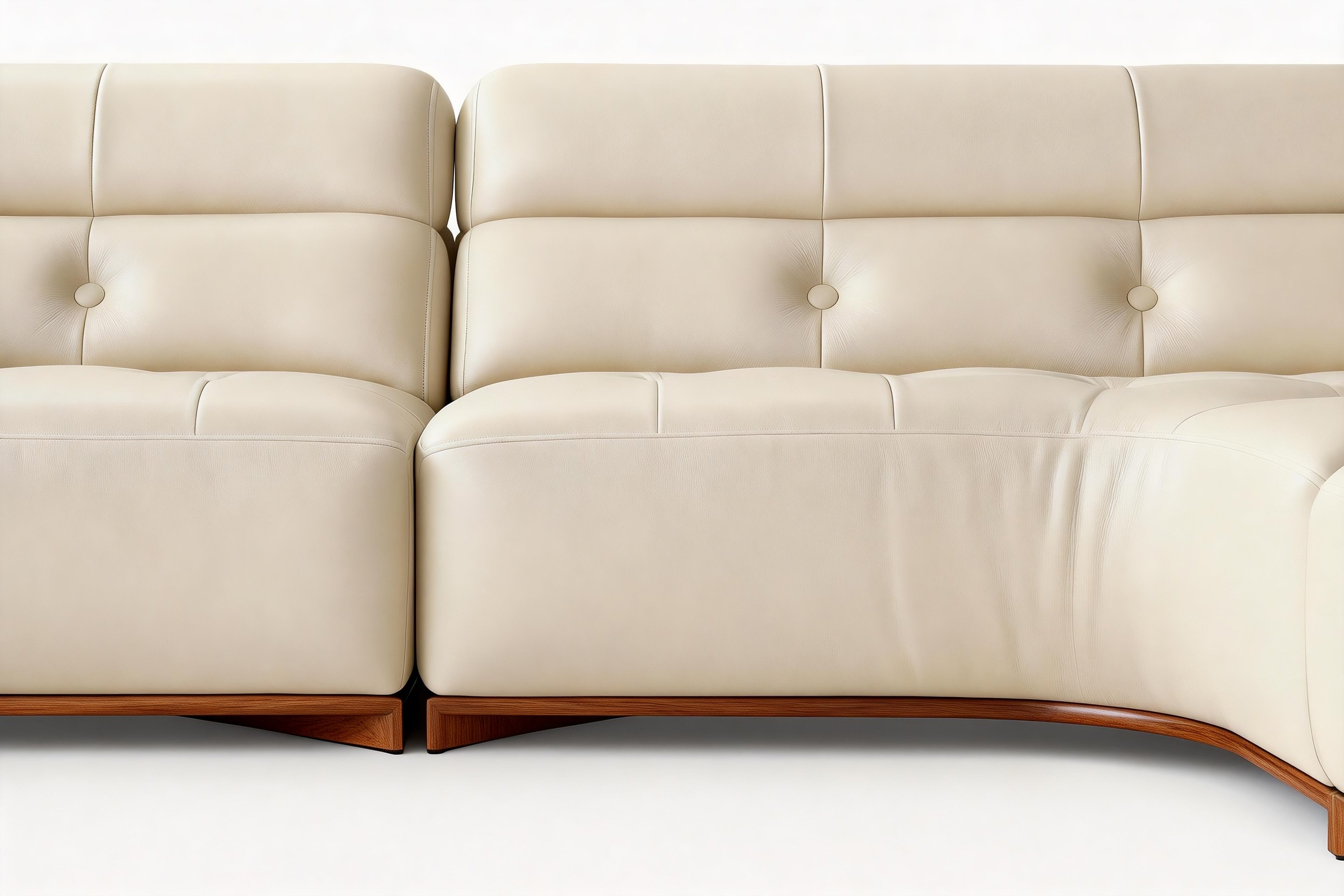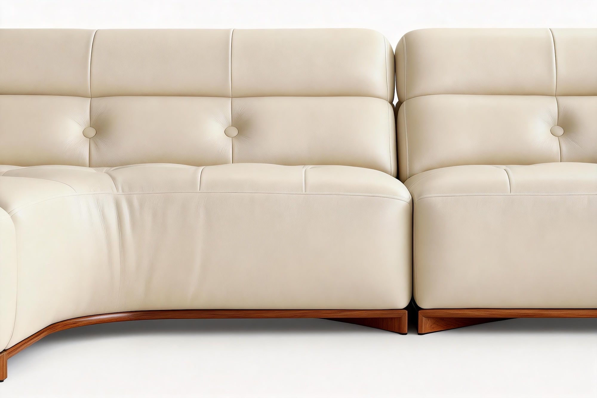 - Buttons on backrest covered in matching leather with removable upholstery options.
