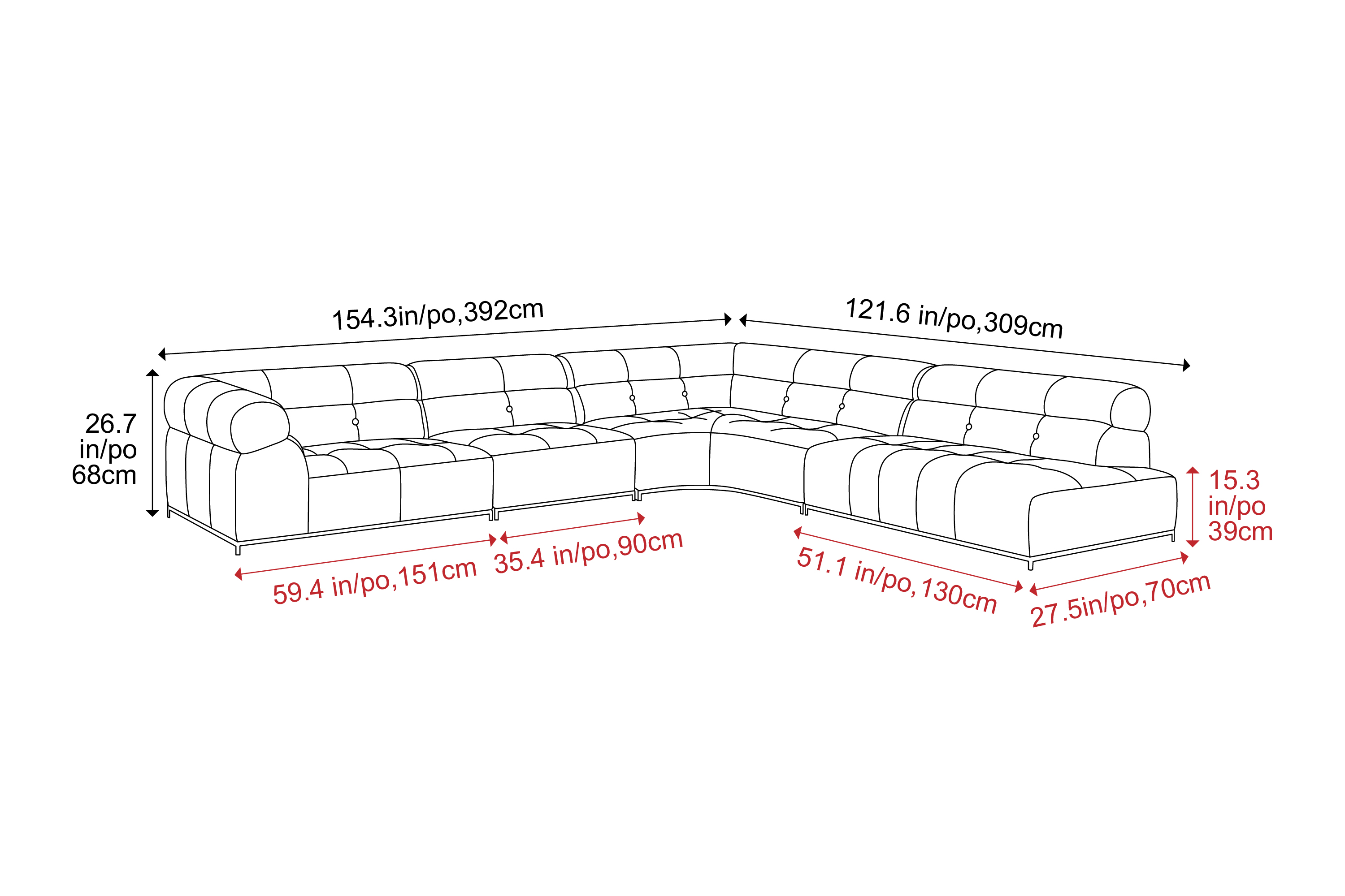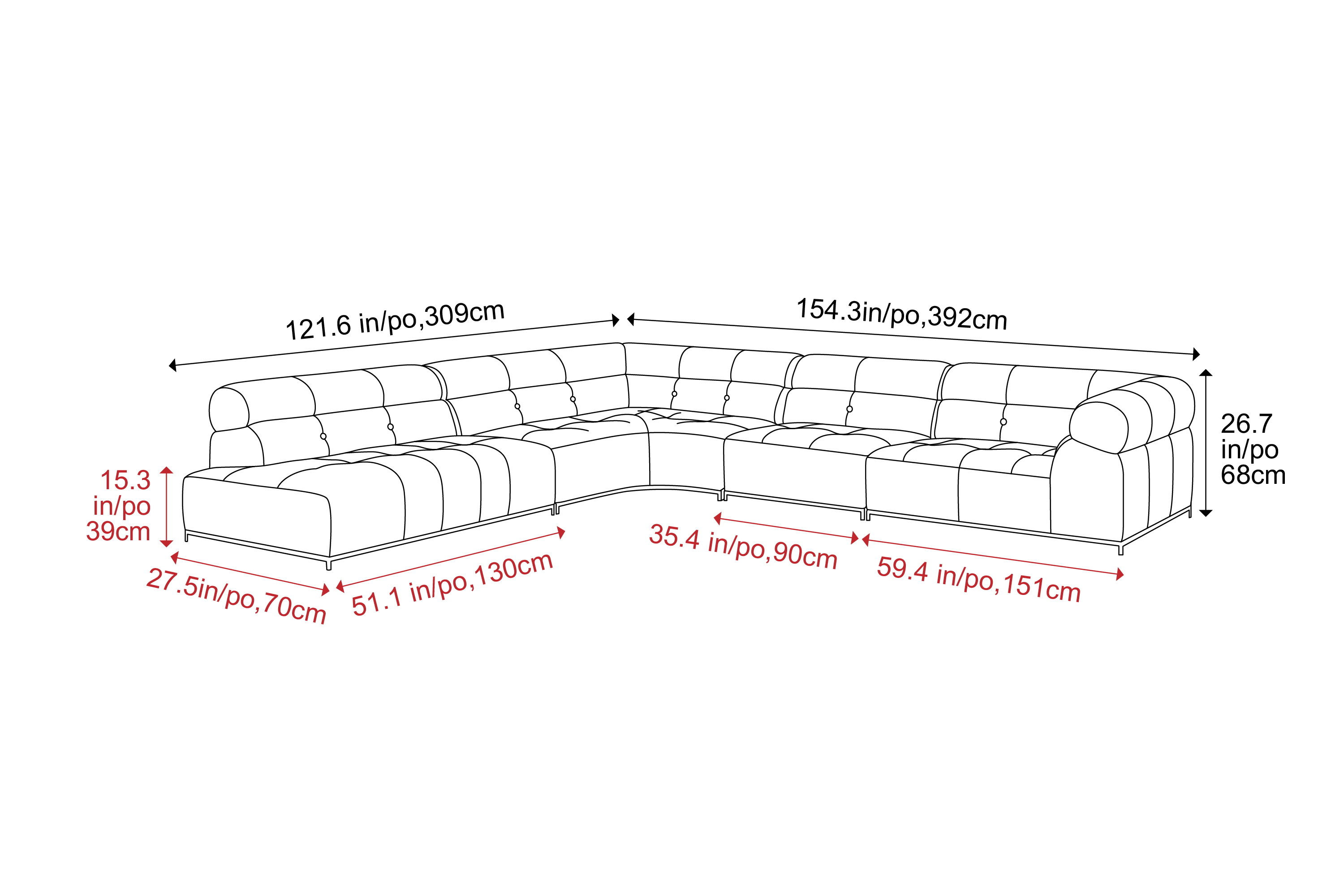 Overall Dimensions (WxHxD)121.6 in, 26.7 in, 27.5 in121.6 in, 26.7 in, 27.5 in