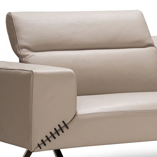 - Its low-profile silhouette, enhanced by bold contrast stitching and sleek stainless steel legs, brings a striking, modern edge to any contemporary living space.