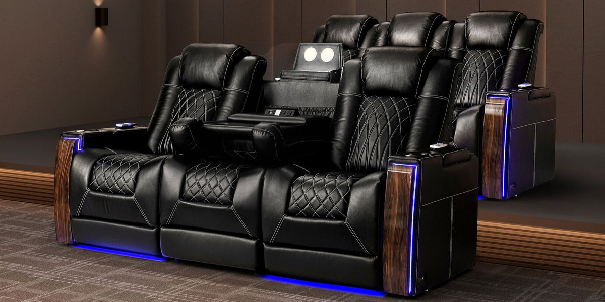 - Upgraded heated seating cushion delivers soothing warmth, while enhanced therapeutic massage technology targets key lower back zones—offering focused relief and deeper relaxation for a truly indulgent home theater experience.