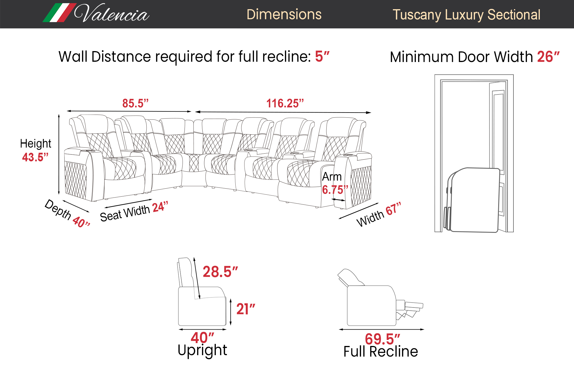 - Each side includes two seats (four in total), all featuring power recline, power headrest, and power lumbar support for fully personalized relaxation.