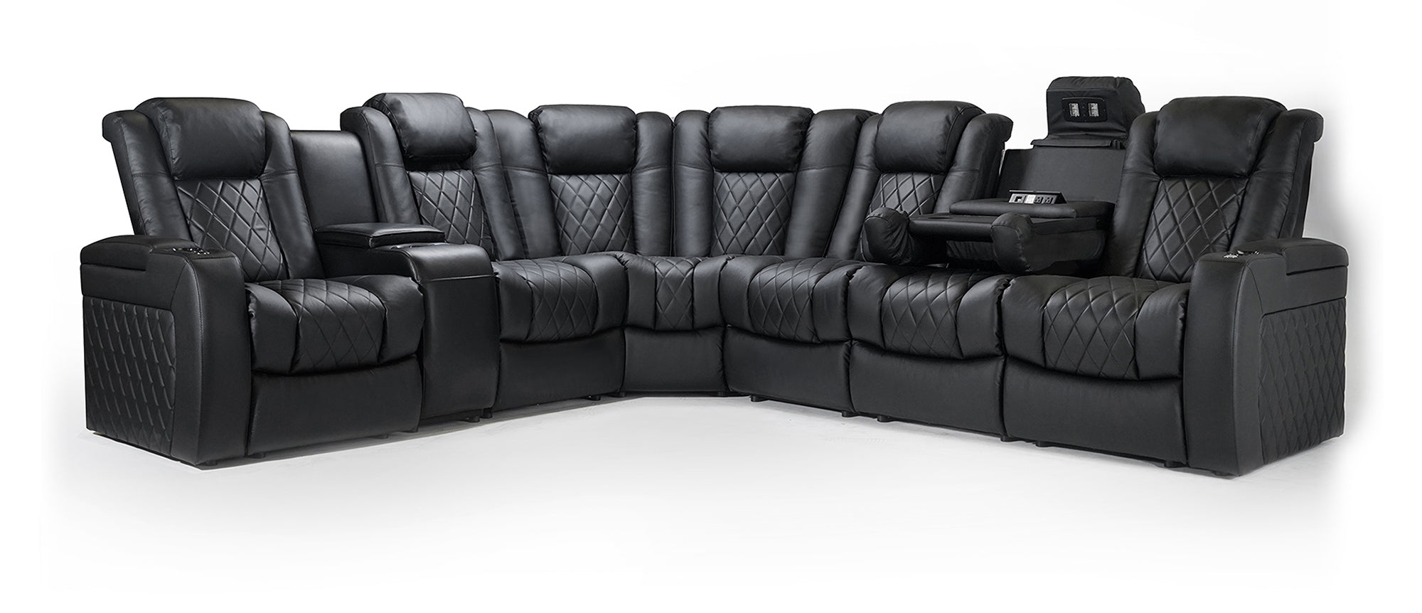 - Integrated center console holds wine, snacks, and essentials for a seamless entertainment setup.