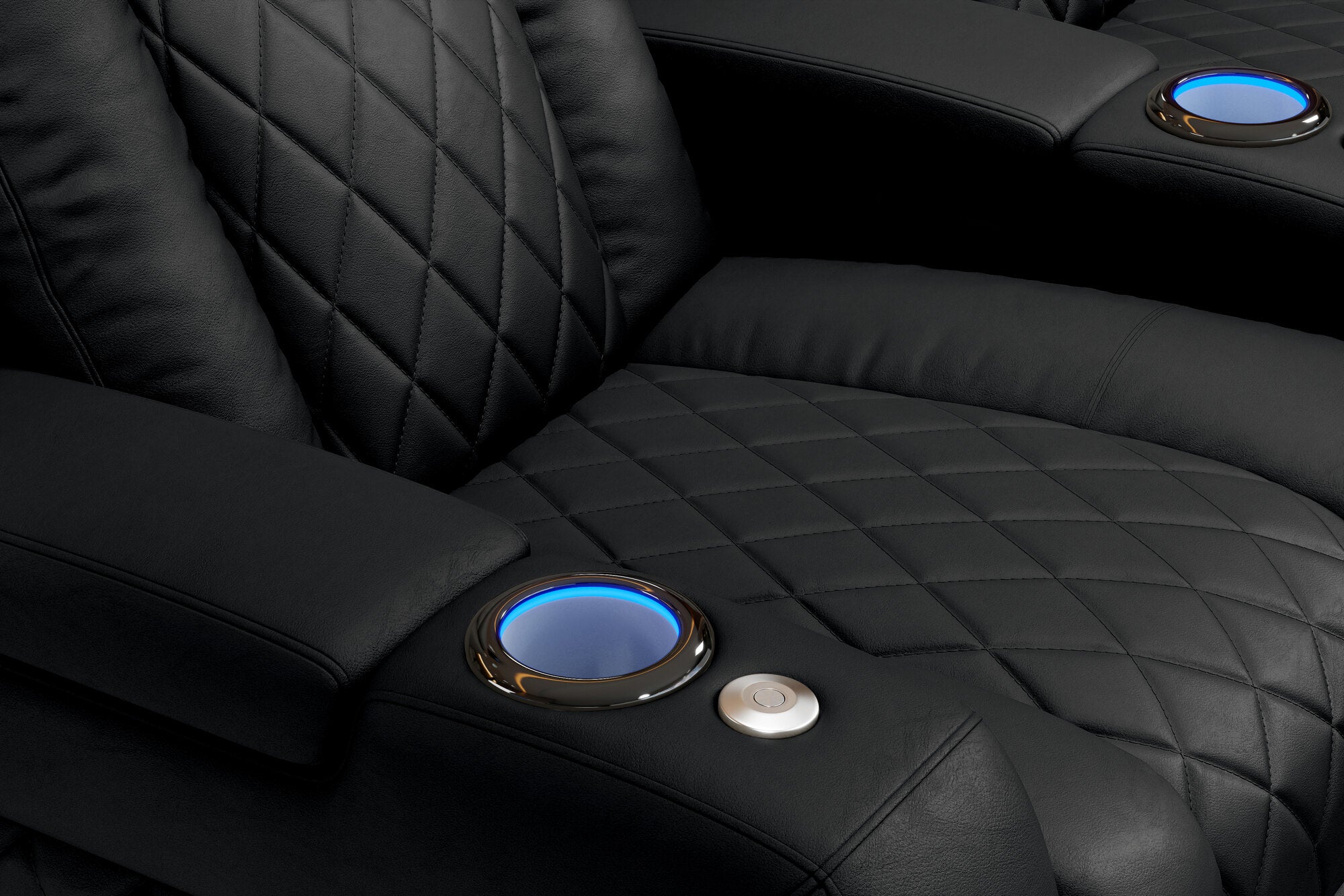 - Lined with RGB LED lighting in 7 vibrant colors, the black chrome cupholder rims help you effortlessly locate your drink—even in complete darkness.