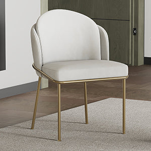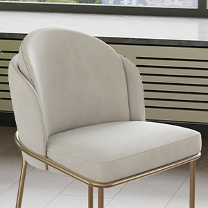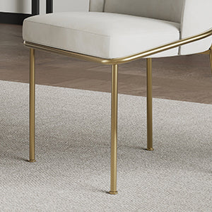 Elevate your dining experience with the Alexander Dining Chair, a symbol of timeless luxury and comfort. Crafted with sleek brass metal legs and a generously cushioned seat and backrest filled with high-density foam, this chair offers unparalleled support and style. Its chic design adds an elegant ambiance to any dining space, while floor-protective glides ensure both practicality and sophistication. With solid powder-coated brass metal legs and easy assembly, the Alexander Dining Chair is a statement piece that embodies exquisite craftsmanship and refined taste.