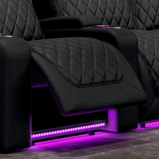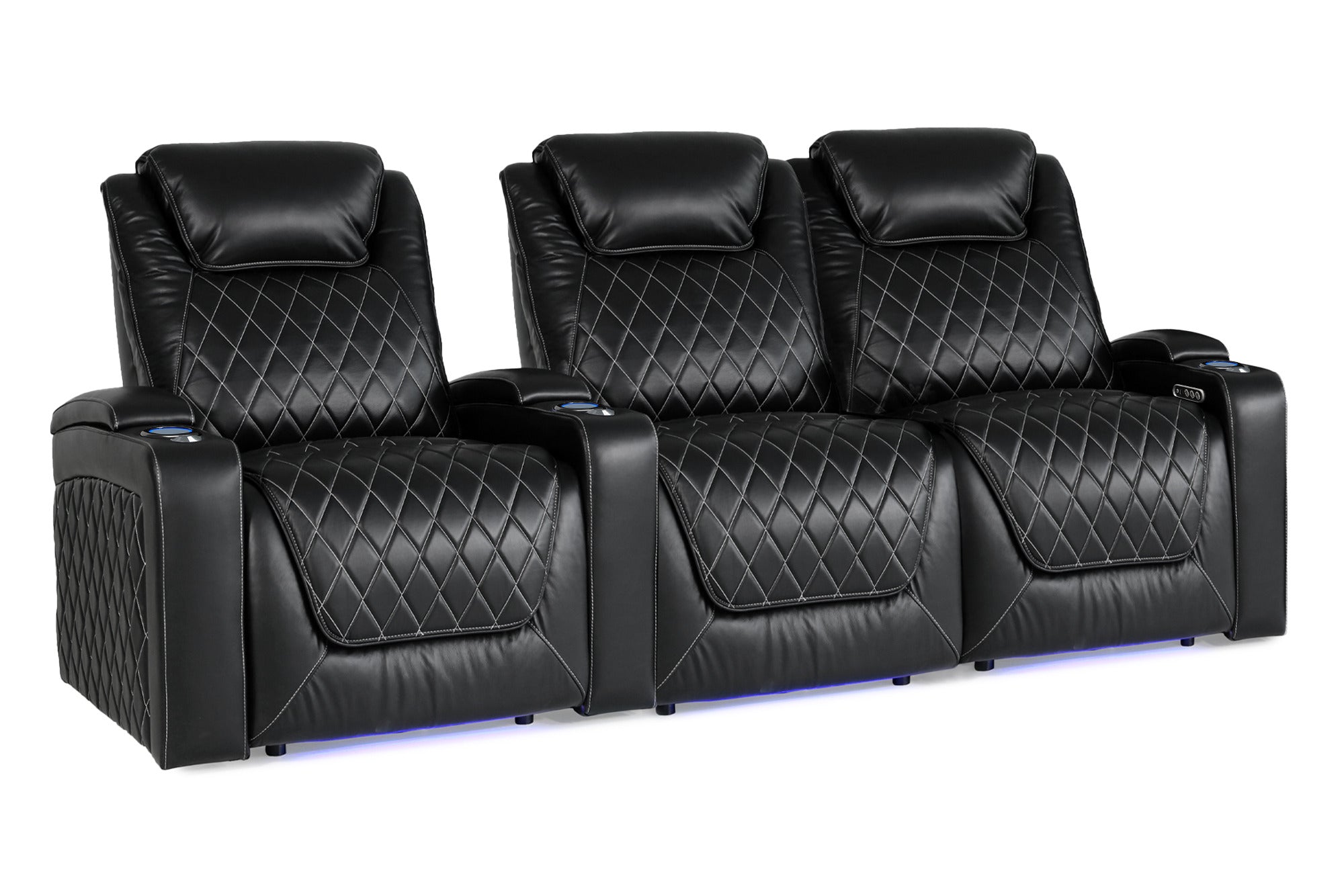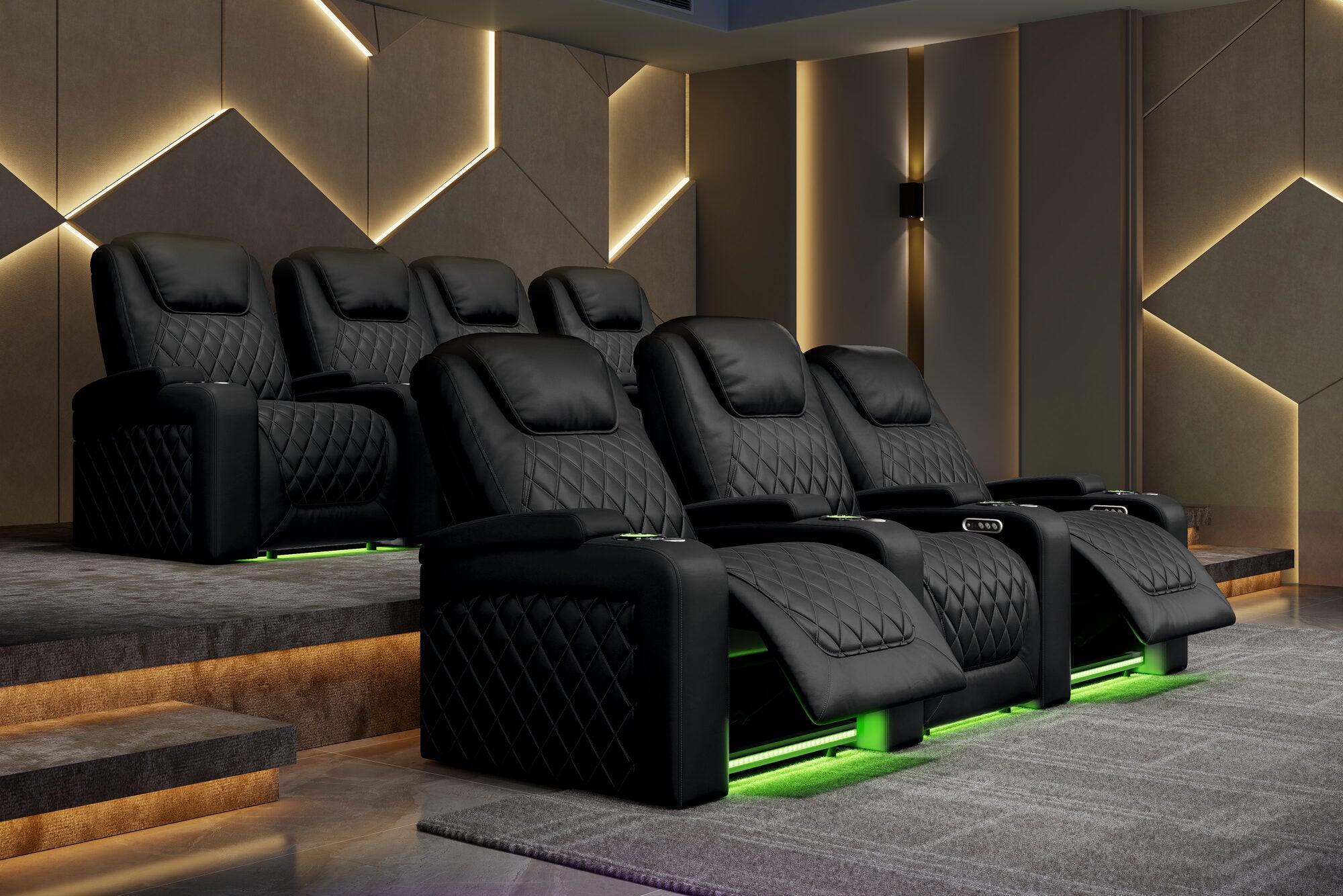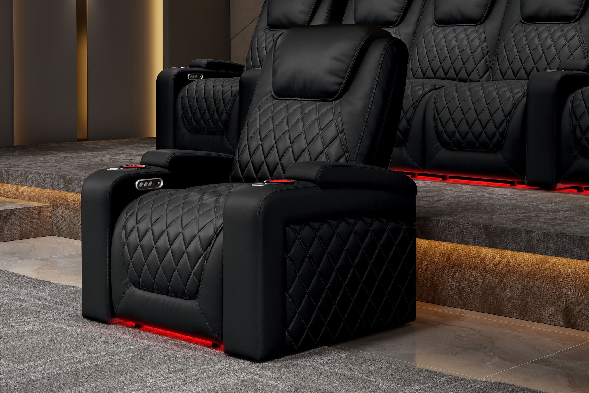 - This elegant diamond-quilted stitching detail complements your home theatre with a regal aesthetic while enhancing ergonomic comfort with added softness and support.