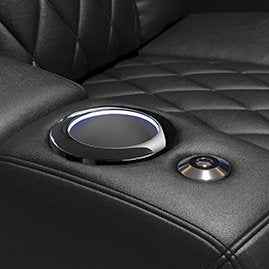 - Lined with RGB LED lighting in 7 vibrant colors, the black chrome cupholder rims help you effortlessly locate your drink—even in complete darkness.