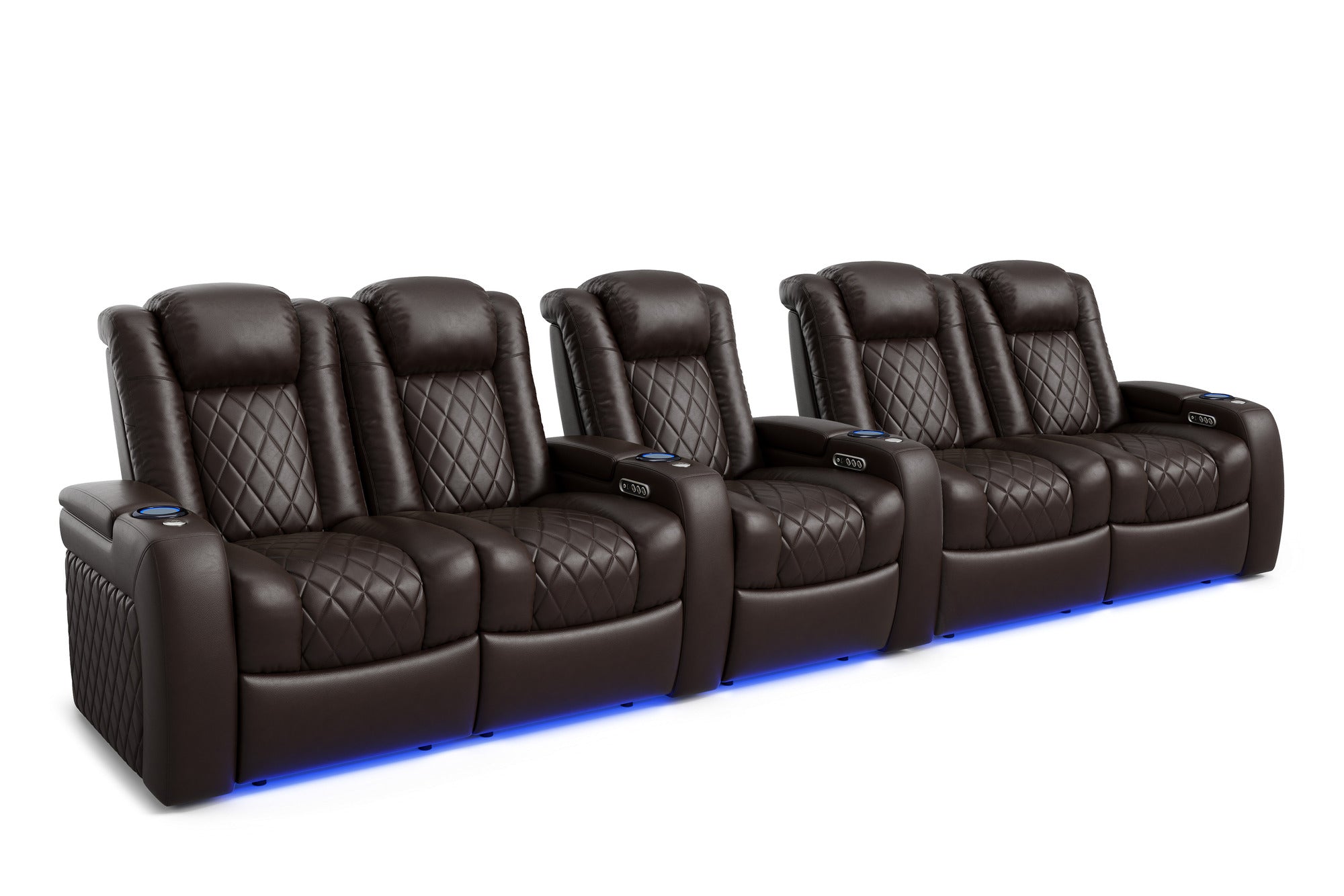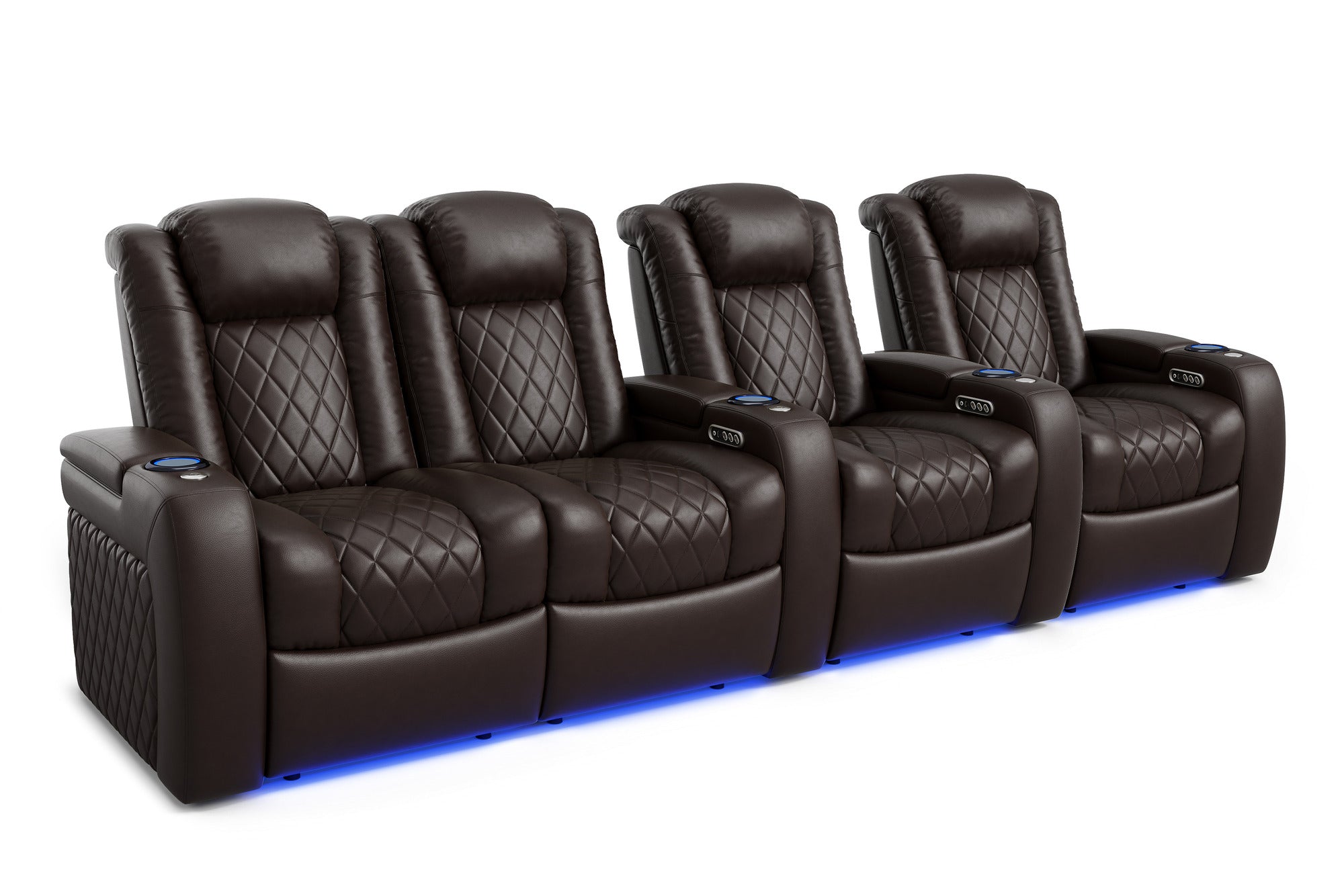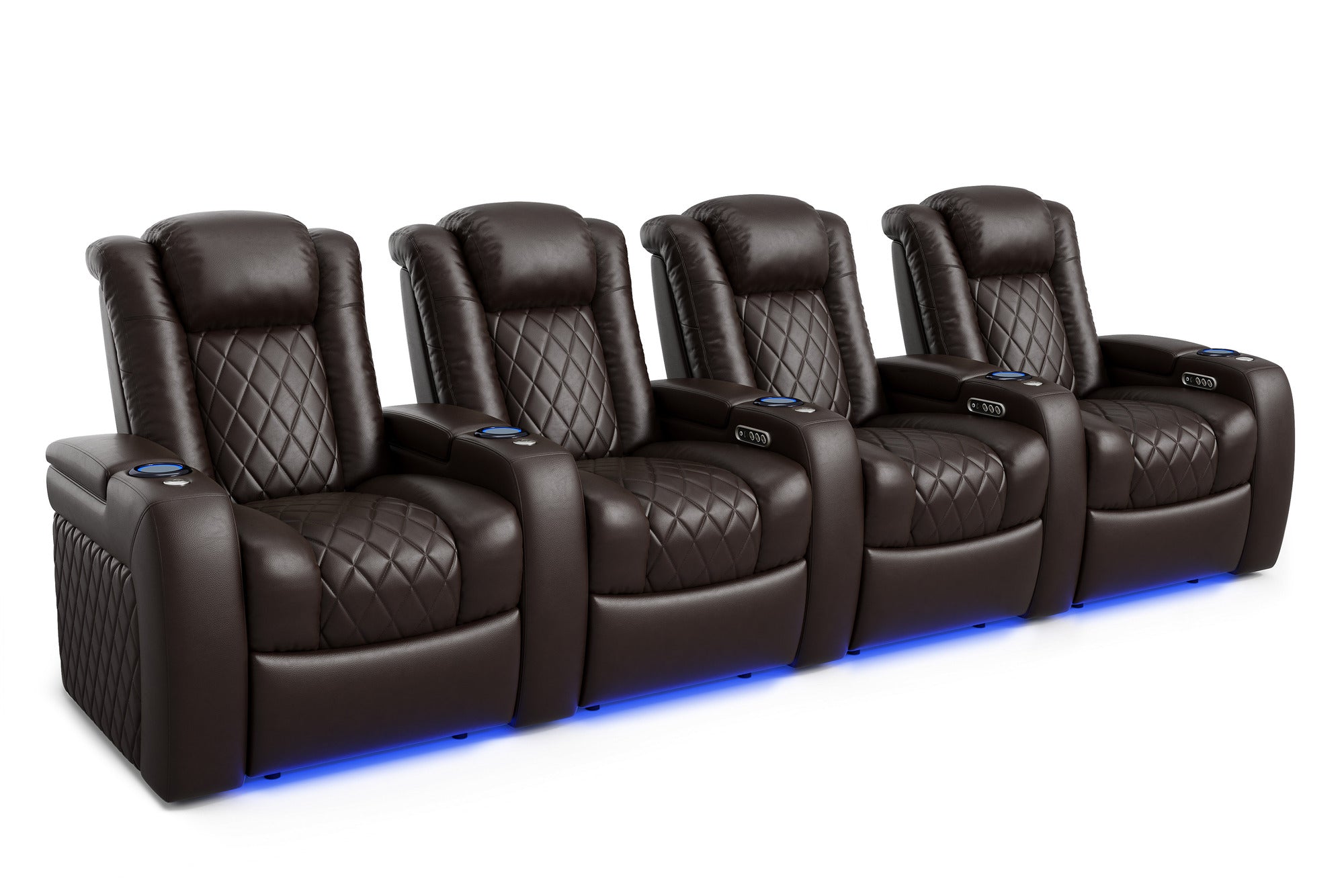 Introducing the 2025 Version of Our Best-Selling Tuscany Home Theater Seating! Upgrade your home theater with the brand new Tuscany 2025 with upgraded technology and cutting-edge comfort, A perfect blend of luxury, style, and comfort. Designed for unmatched relaxation, this premium recliner is crafted with new imported Top-Grain Italian Nappa leather 11000 on all seating surfaces, offering a smooth and elegant touch. Enjoy immersive movie nights with new RGB cup holders with ambient base lighting, and a motorized reclining system that lets you find your perfect seating position effortlessly. The newly upgraded Tuscany now features deeper hidden arm storage, perfect for keeping your accessories close at hand. Plus, an air piston-assisted storage lid ensures smooth and safe operation. Our tactile button control system replaces traditional soft-touch buttons, allowing you to activate all functions simultaneously for an enhanced experience.