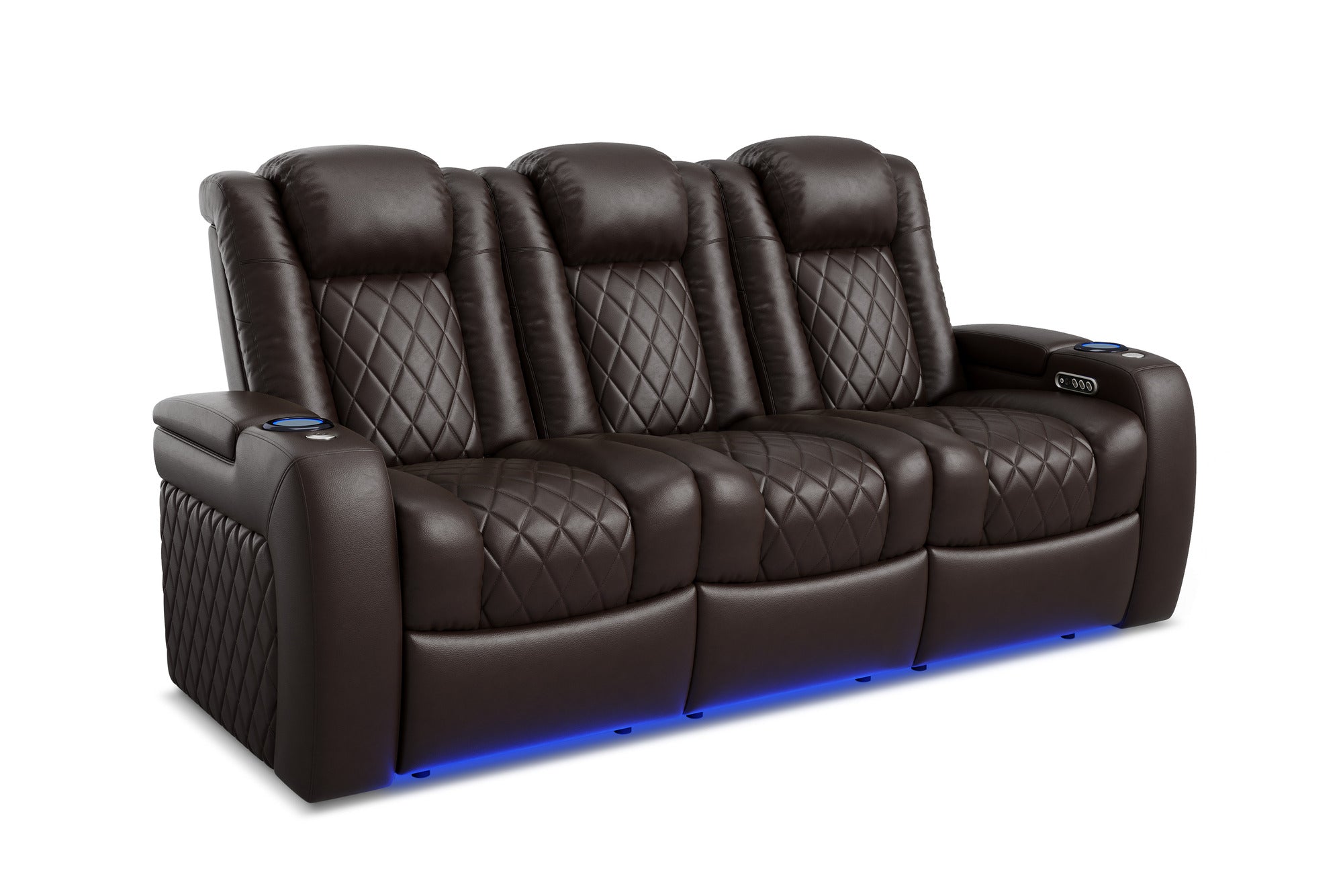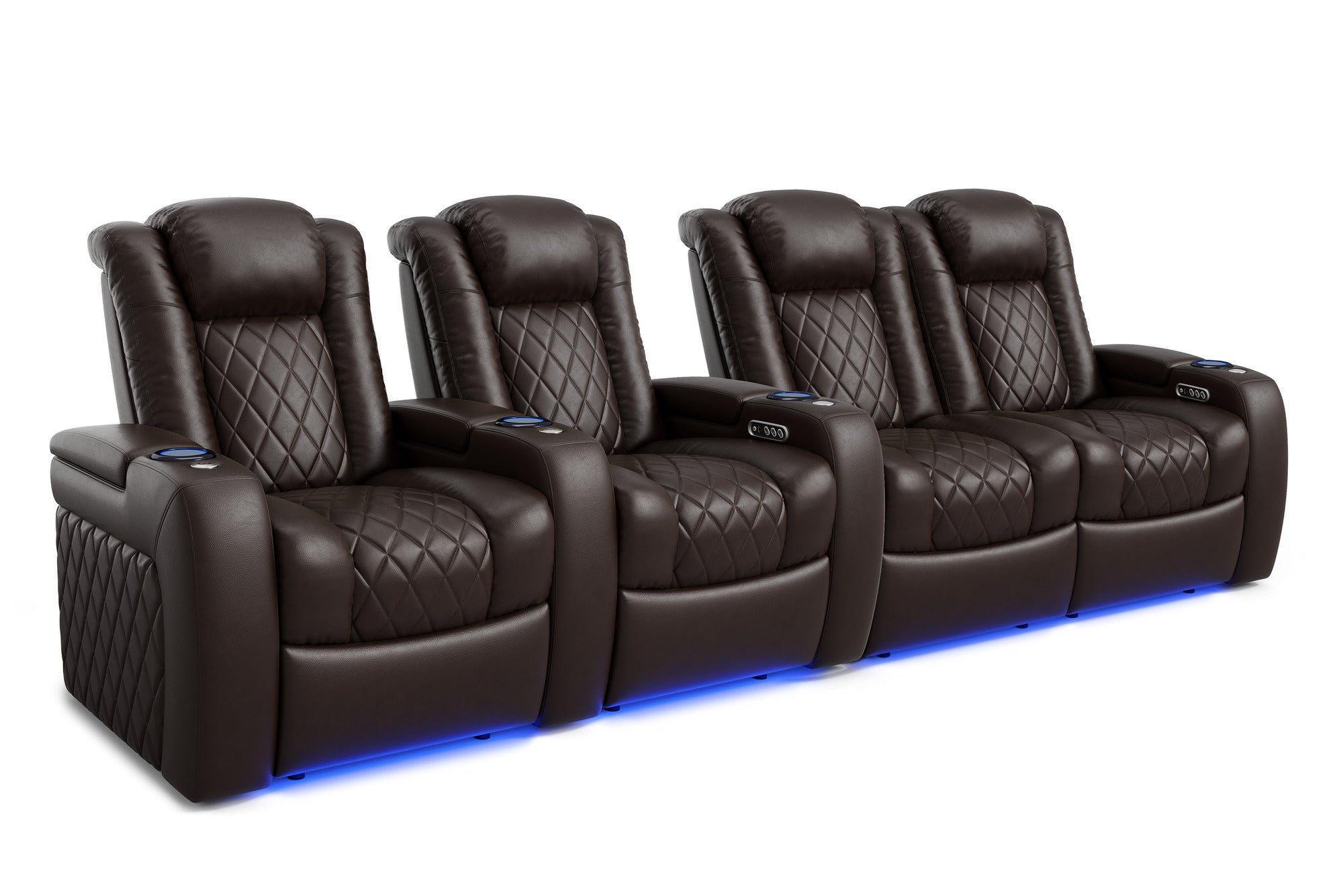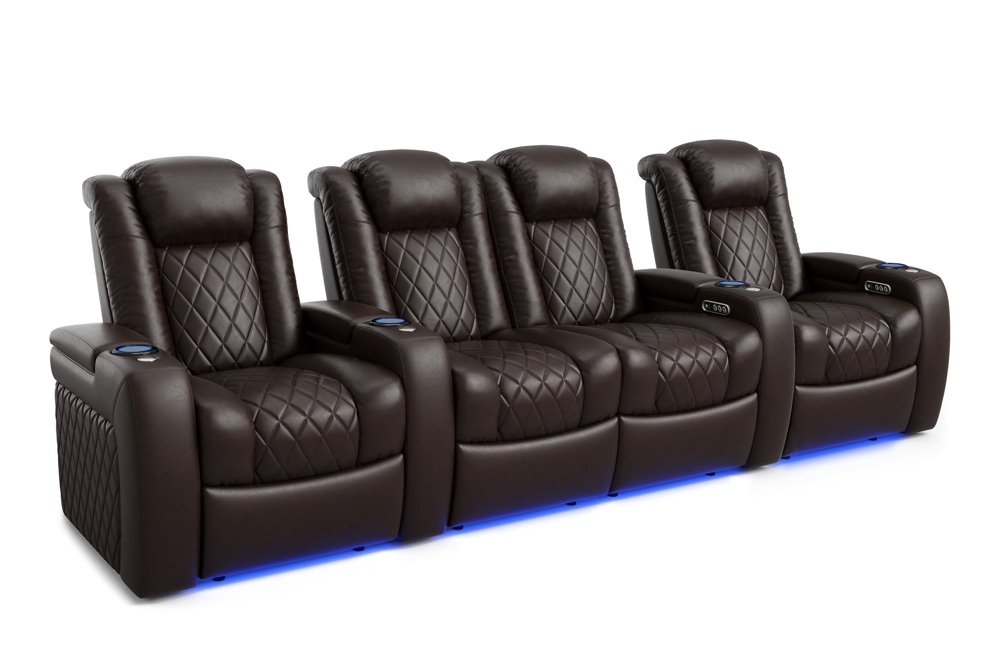 Introducing the 2025 Version of Our Best-Selling Tuscany Home Theater Seating! Upgrade your home theater with the brand new Tuscany 2025 with upgraded technology and cutting-edge comfort, A perfect blend of luxury, style, and comfort. Designed for unmatched relaxation, this premium recliner is crafted with new imported Top-Grain Italian Nappa leather 11000 on all seating surfaces, offering a smooth and elegant touch. Enjoy immersive movie nights with new RGB cup holders with ambient base lighting, and a motorized reclining system that lets you find your perfect seating position effortlessly. The newly upgraded Tuscany now features deeper hidden arm storage, perfect for keeping your accessories close at hand. Plus, an air piston-assisted storage lid ensures smooth and safe operation. Our tactile button control system replaces traditional soft-touch buttons, allowing you to activate all functions simultaneously for an enhanced experience.
