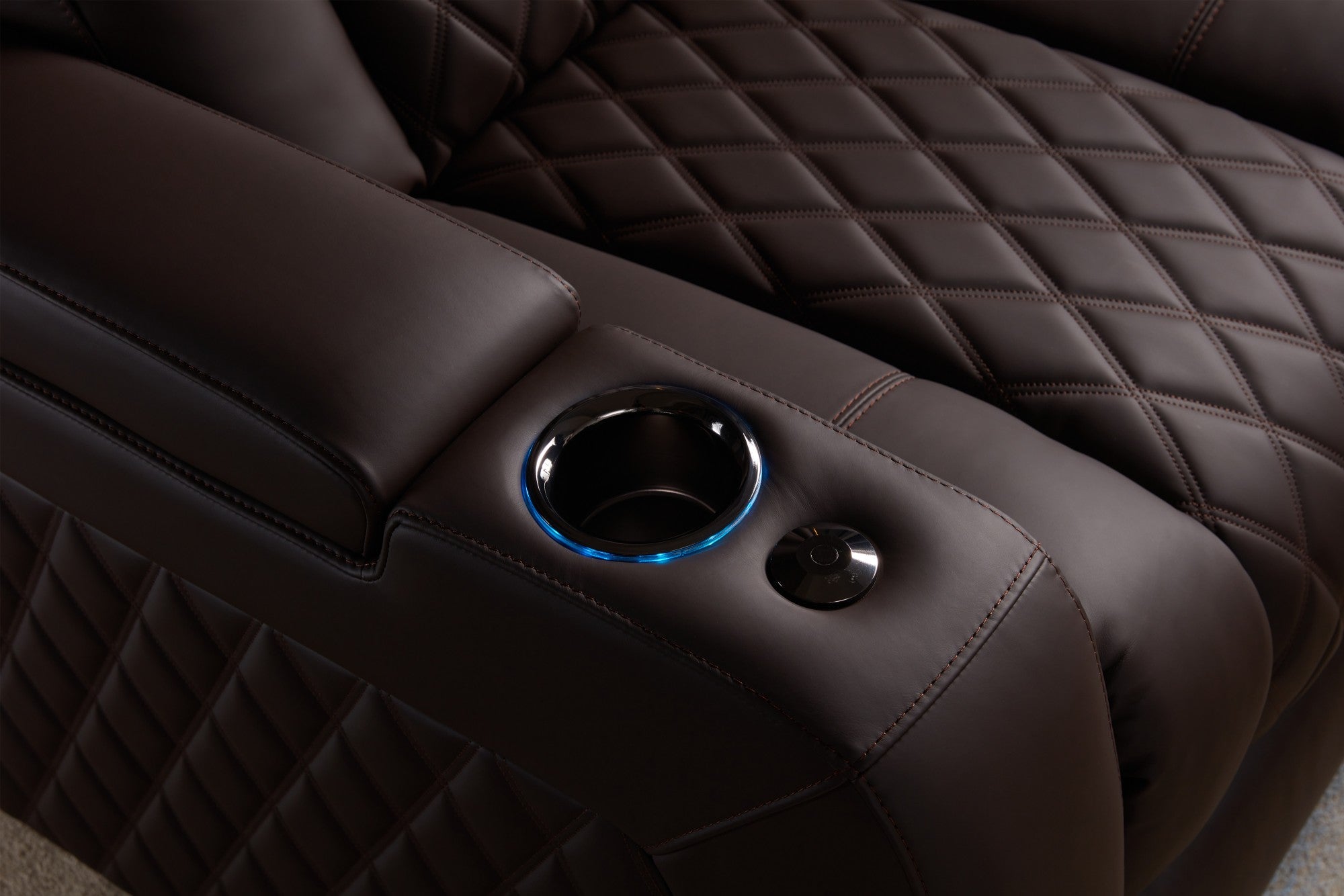 Tuscany Luxury Console Edition is a luxurious upgrade from our Tuscany Console home theater couch. One movie night in this, and you’ll see why it’s the perfect high-end seat for your media room. It is the perfect seat for those seeking bespoke craftsmanship with a timeless design. Choose from rich black or brown leather upholstery on these home theater couches that can sit 3 or 5 people. Located on all parts of the chair that touch your body, the luxury Semi-Aniline Italian Nappa leather 20000 is a step above our premium top grain Nappa leather 11000. The smooth buttery matte finish is unwavering in its perfection and luxe appeal.