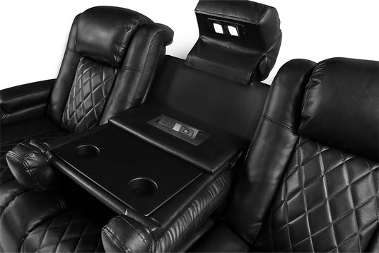 - Features power-adjustable lumbar support, headrest, and recline for personalized relaxation.
