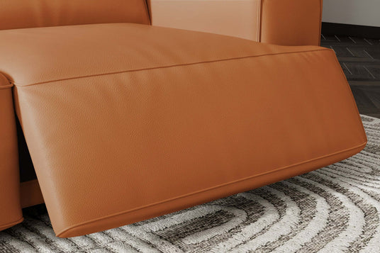 - Indulge in ultimate relaxation with our innovative dual-power reclining system. Both sides boast electric power headrests for personalized comfort, with an additional center headrest that conveniently flips for shared enjoyment.