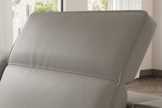 - Indulge in ultimate relaxation with our innovative single-power reclining system. Both sides boast electric power headrests for personalized comfort, with an additional center headrest that conveniently flips for shared enjoyment.
