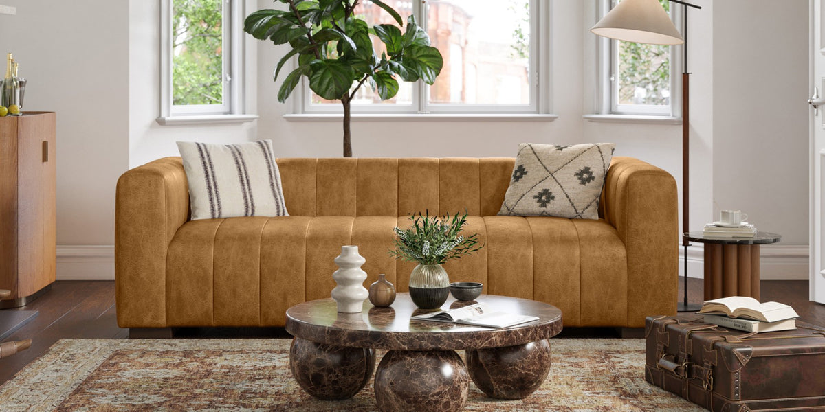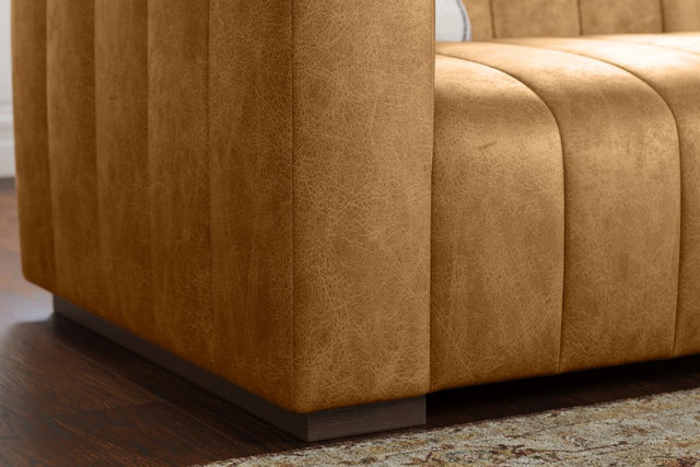 Introducing the Victoria top-grain leather sofa with 3 seats — a masterpiece of sophistication and comfort. Wrapped in exquisite 100% premium Italian leather, its channel-tufted design exudes luxury and timeless style. Crafted with a corner-blocked, kiln-dried wood frame supported by Pirelli webbing, this timeless leather sofa promises enduring quality. The tight-fixed cushioning, features high-resiliency polyurethane foam, ensuring an indulgent seating experience that only improves with time. Elevate your space with the Victoria leather sofa, where elegance meets exceptional comfort in a modern, low-profile design.