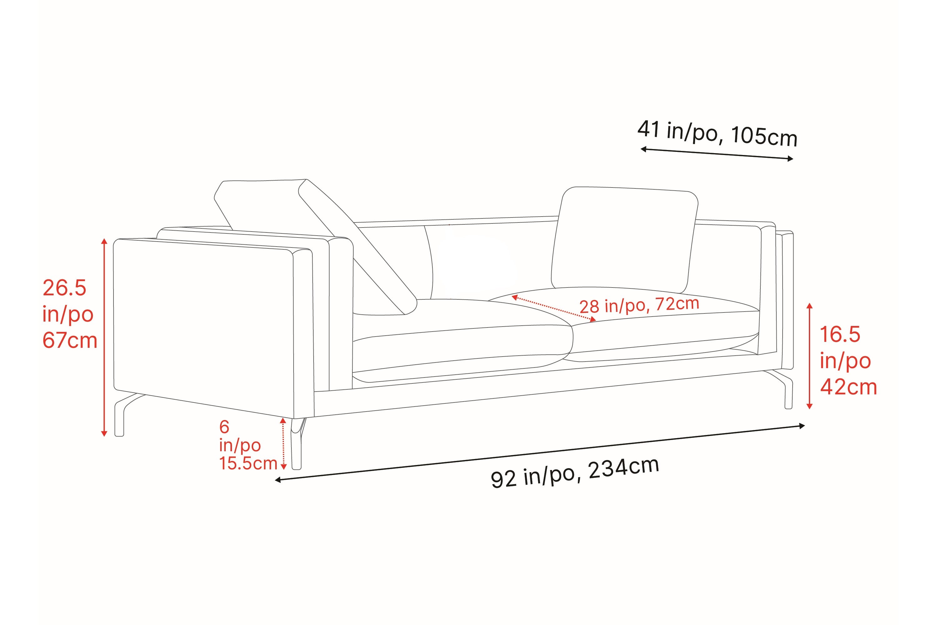 92" Wide Seat Sofa Dimensions