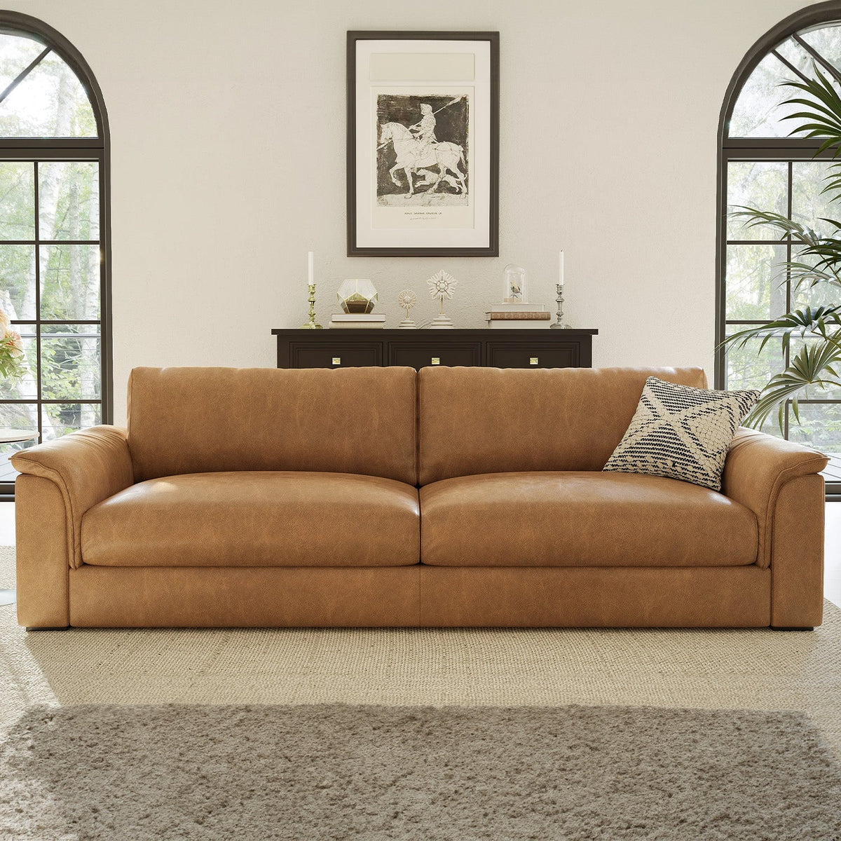 - Our luxurious aniline leather sofa is engineered with a sinuous wire suspension system, which guarantees durability and stability for years to come.